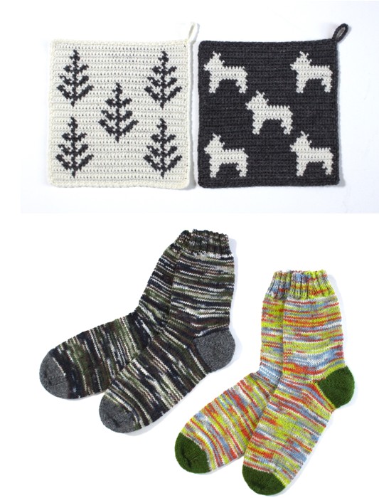 ◎手編み(棒針編み、かぎ針編み、アフガン編み、魔法の一本針)や機械編みを混ぜながら、